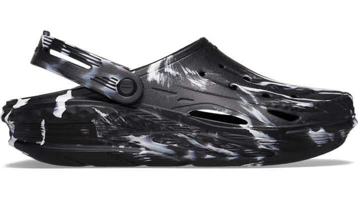 Digitally inspired and ever-changing, the Off Grid Collection embodies speed in a street-ready form. Its unique sculping and contouring offers a new look and feel while maintaining comfort that’s synonymous with Crocs. This version features our marbled Croslite™ material, which creates a colorful effect that is completely unique. While all marbled shoes have the same wavy look, no two shoes are exactly alike. Off Grid Marbled Clog Details: Marbled effect unique to every shoe Single-piece molded Croslite™ construction Futuristic, molded backstrap for optimal fit Sidewall ventilation for breathability Customizable with Jibbitz™ charms Iconic Crocs Comfort™: Lightweight. Flexible. 360-degree comfort.