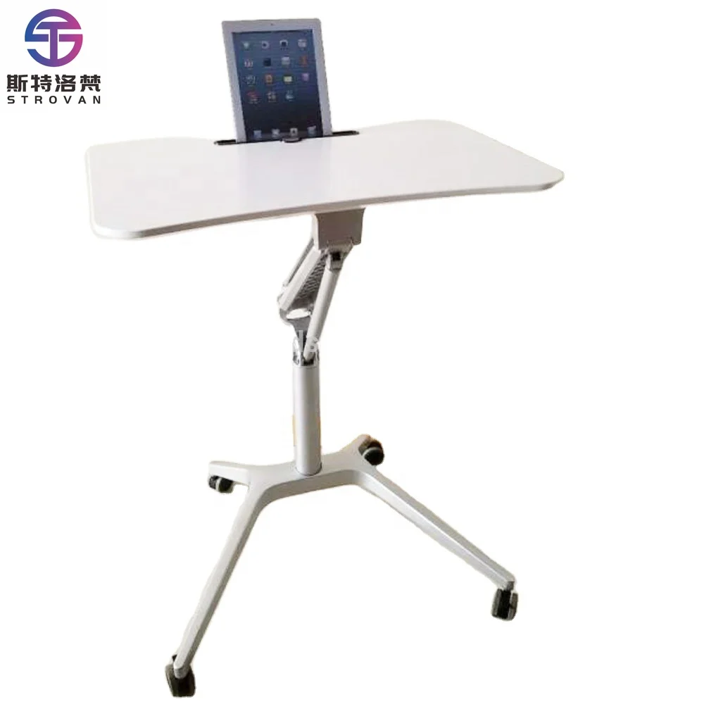 Office Home Height Adjustable Gas Spring Lift Movable Table Single Leg Pneumatic Height Adjustable Mobile Laptop Computer Desk