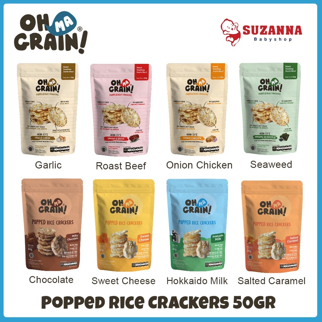 Oh Ma Grain! adalah snack beras yang terbuat dari campuran beras coklat dan beras putih organik. Proses pembuatannya tidak dipanggang, tidak digoreng, tapi menggunakan popping technology.