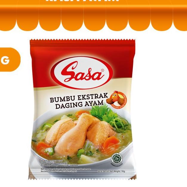 Sebelum Melakukan pemesanan, Mohon untuk baca dulu ya, karena kami tidak berharap untuk mengecewakan pelanggan kami. Selama barang masih ada postingannya berarti stock produk tersebut ready, jadi bisa di order lansung. Untuk pemesanan jika ada pilihan opsi warna dimohon untuk mencantumkan keterangan warna dan opsi jika warna kosong atau (Hubungi CS). Terima Kasih Sasa Kaldu Pelezat Rasa Ayam 1 Kg ⭐⭐⭐⭐⭐ Kaldu Pelezat Serbaguna dengan rempah asli dan ekstrak ayam. Menghasilkan kelezatan dengan rasa kaldu utuh yang begitu terasa dagingnya di setiap masakan Shelf Life: 12 bulan "DENGAN MEMBELI PRODUK INI SAMA DENGAN SETUJU DENGAN SYARAT DAN KETENTUAN DIATAS" ★★★★★ MOHON DI PERHATIKAN (MEMBELI = SETUJU) 1. Pesanan sudah kami QC baik jumlah maupun kualitas, (kasih note pilihan warna alternatif, jikalau kosong kami akan memberitahukan melalui fitur chat dan kami tunggu respon 1X24 jam, tidak ada respon chat maka warna akan kami ganti dengan warna yg mirip/ random) 2. Kerusakan/kehilangan paket dlm pengiriman diluar tanggung jawab kami (bisa klaim langsung ke pihak kurir yg di pilih) 3. Di tunggu order berikutnya ajakin temen dan keluarga ya! 4. Terima kasih. ~~>>>> Kepuasan pelanggan adalah tujuan utama kami >>>>> Terima Kasih Atas Kunjungan Anda