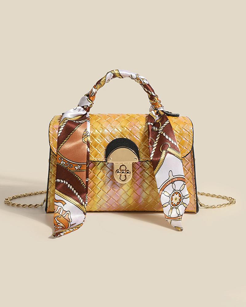 Ombre Chain Strap Shoulder Bag With Ribbon Decor Handle, Yellow