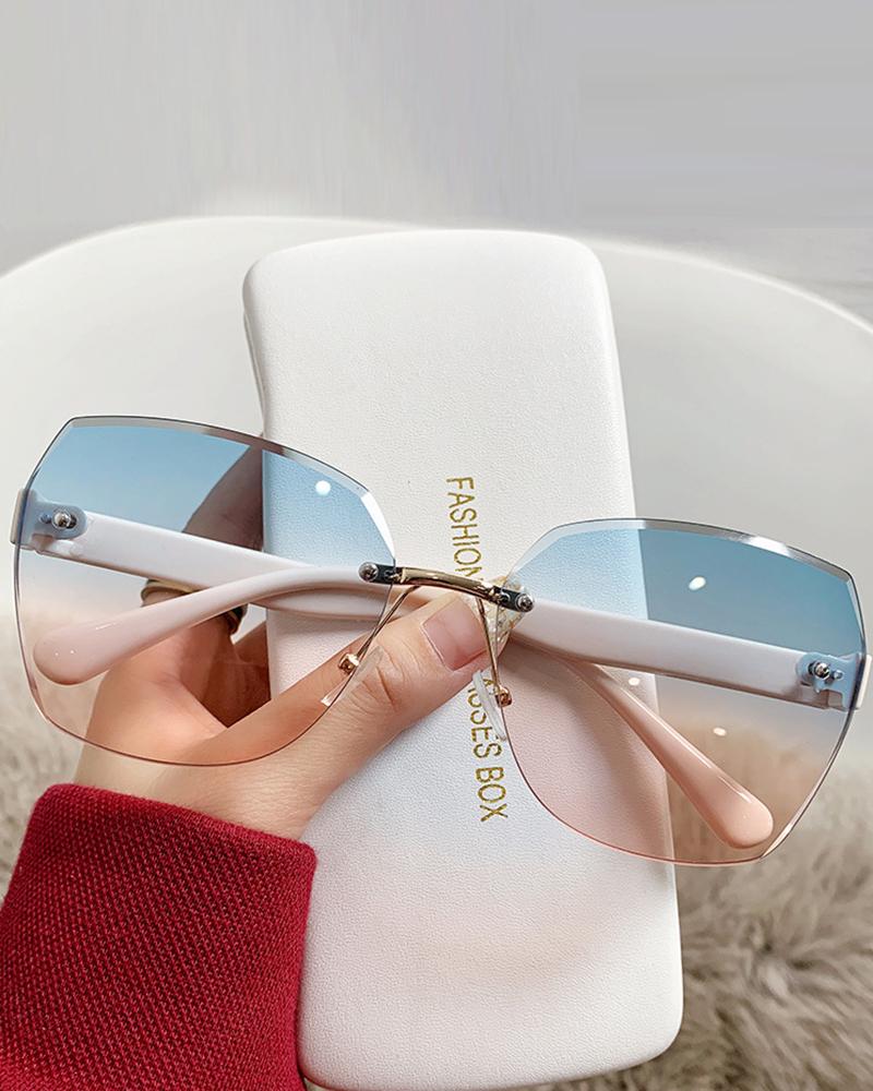 Ombre Rimless Geometric Sunglasses, Blue