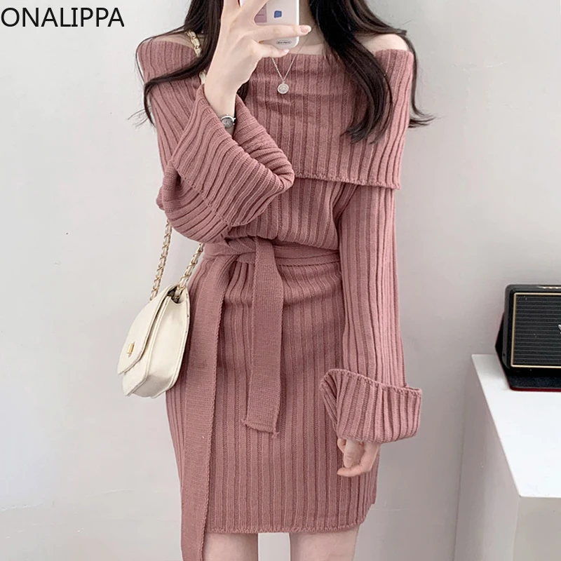 Onalippa 2021 осеннее женское темпераментное Ретро французское платье с одним вырезом и открытыми плечами с полосками на шнуровке, облегающее тр...