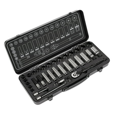 Sealey Ak7971 Socket Set 34Pc 3/8In Sq Drive 6Pt Walldrive Metric Black Series