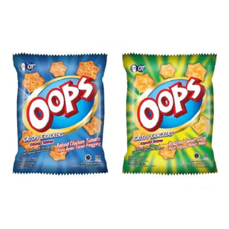 Oops snack renyah dengan rasa sweet corn dan chiken tomato exp lama