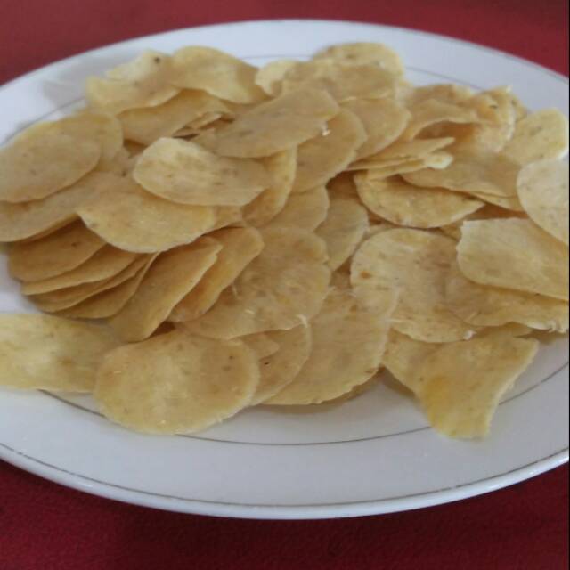Terbuat dari asli singkong dengan tektur lembut dan tipis sehingga tidak usah dijemur dan langsung goreng, cocok sebagai cemilan keluarga.