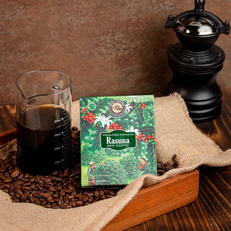 Opal Coffee Rasuna Drip Coffee merupakkan salah satu hasil dari perkebunan yang terkenal di sumatra utara milik PT Opal Coffee Indonesia yaitu Wahana Estate. Rasuna sendiri sangat dikenal baik oleh para kalangan pengiat coffee roastery karena rasanya yang enak dan high-acidity.