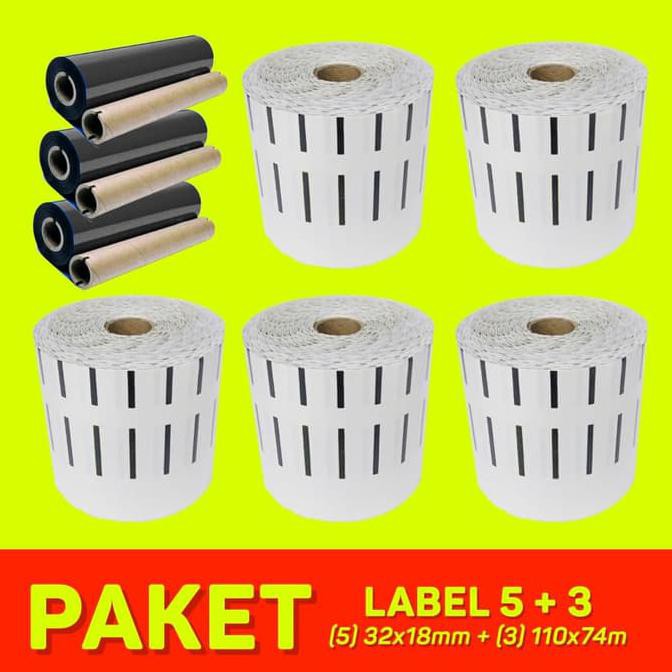 Open Ds] Paket Label Ribbon Barcode 5 + 3 ( Semicoated 32X18Mm + Rwax 110X74M )
