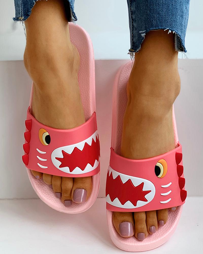 Open Toe Cartoon Pattern Flat Sandals, Pink