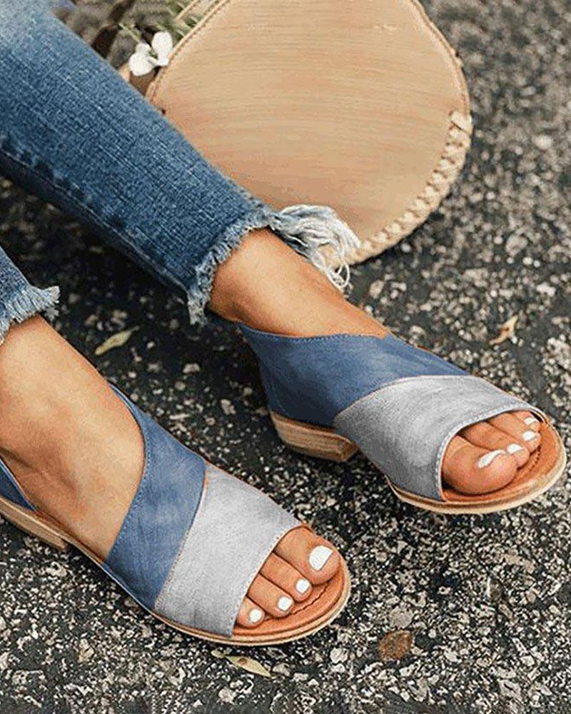 Open Toe Colorblock Insert Cutout Sandals, Blue