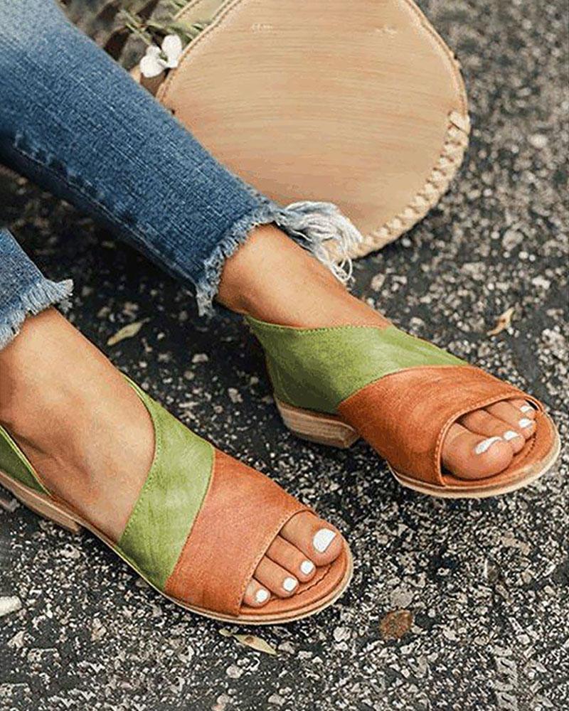 Open Toe Colorblock Insert Cutout Sandals, Green