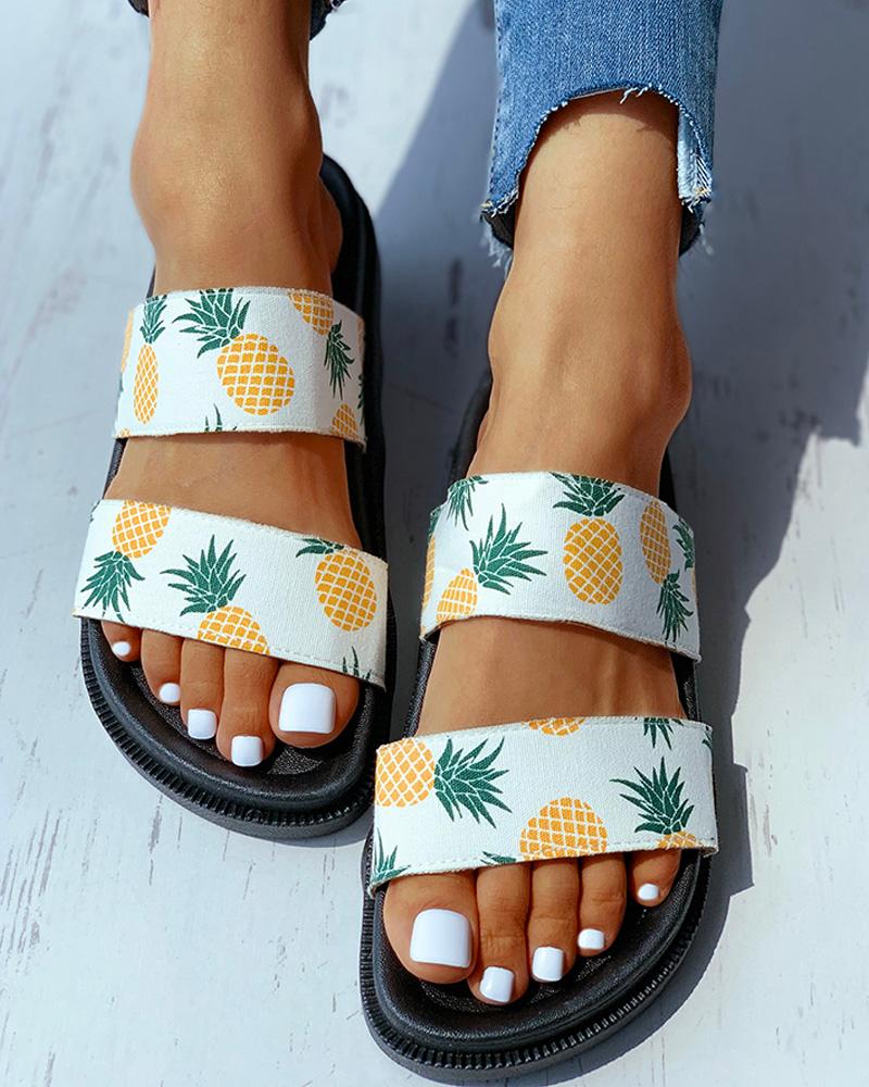 Open Toe Pineapple Pattern Flat Sandals, Black