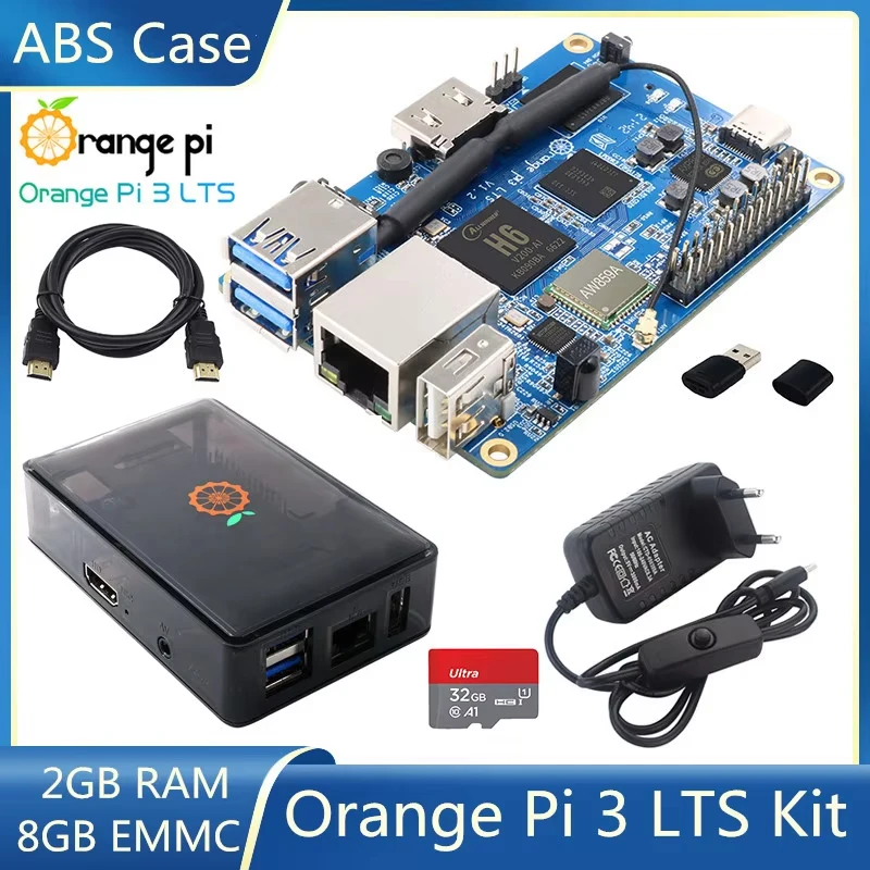 Orange Pi 3 LTS 2 ГБ ОЗУ LPDDR3 8 ГБ EMMC H6 WiFi BT 5.0 Блок питания для платы Android 9.0 Ubuntu Debian OS для Orange Pi 3 LTS