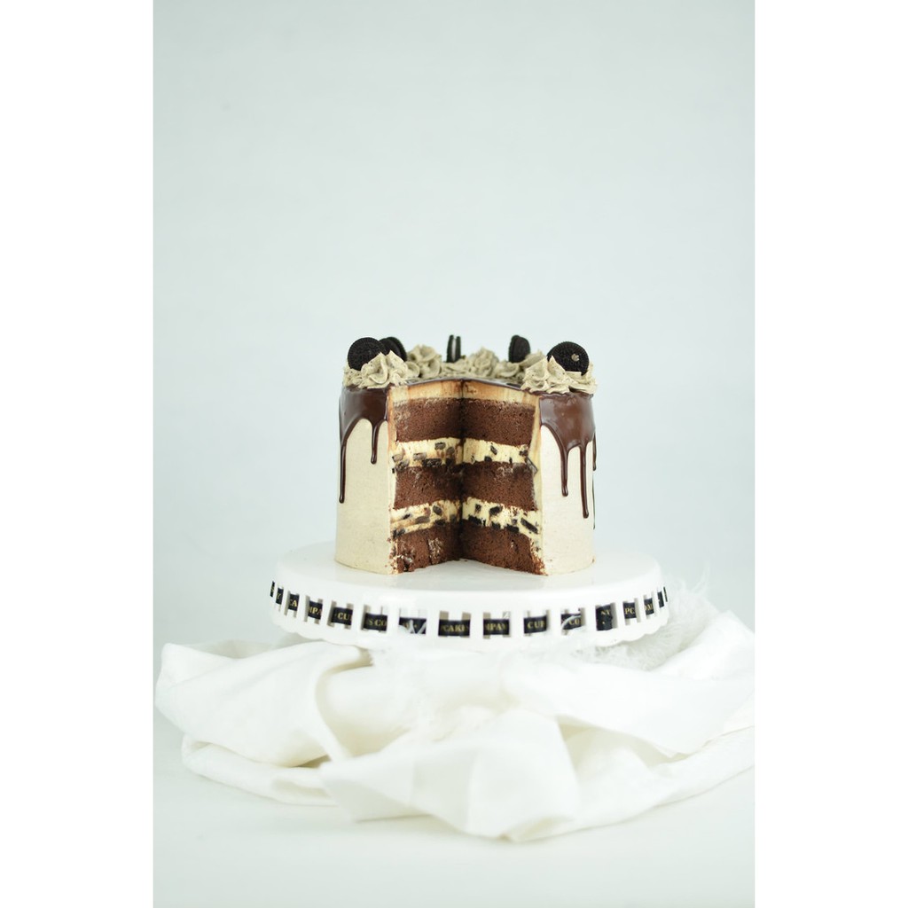 Lapisan chocolate sponge berpadu dengan cheese cake, dilapisi chocolate ganache dan oreo frosting. Diameter 16cm, tinggi 16cm. Pengiriman hanya berlaku untuk wilayah Jadetabek dengan maksimum waktu melakukan pesanan adalah pukul 15.00 (Jika diatas jam tersebut pesanan akan diproses esok hari).