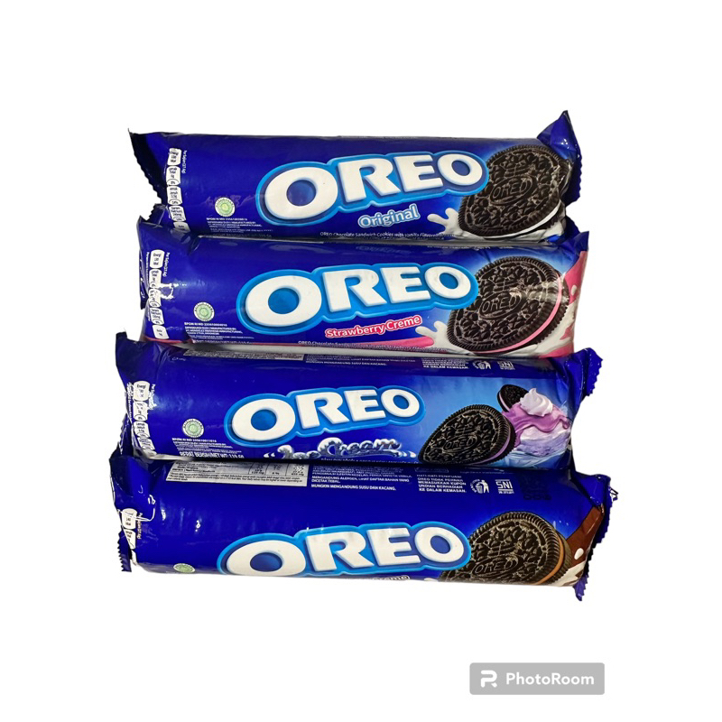Biskuit Oreo Coklat Sandwich demgam berbagai varinat isian Original isi cream vanilla , isi cream cokelat , isi cream ice cream dan isi cream starwberry