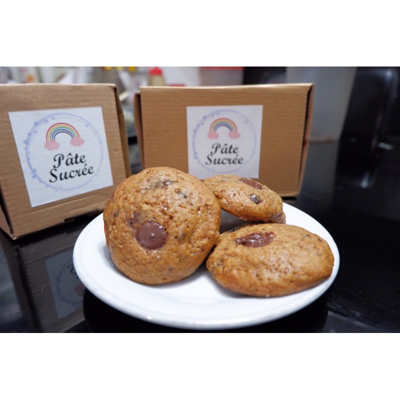 Let me introduce you to our original chocolate chip cookies. Soft cookie dough with dark chocolate chips and top with pinch of sea salt.