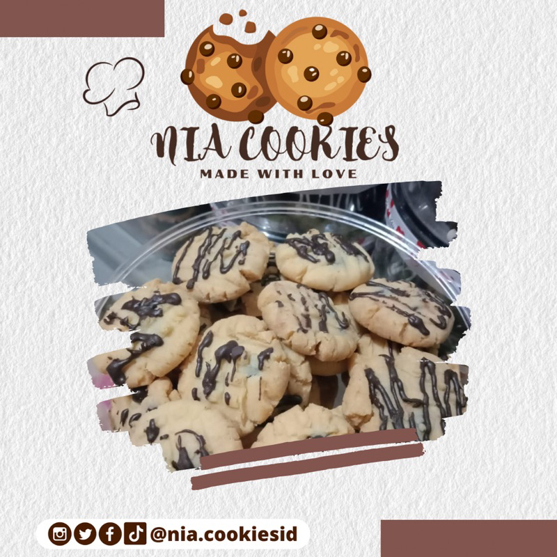 Nia Cookies memiliki texture renyah diluar dan chewy lembut ditengah. Jadi, cocok banget dijadikan Cemilan dan Hampers.