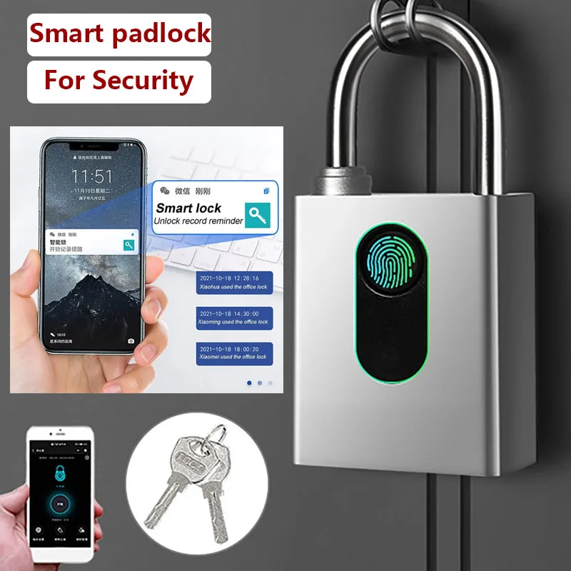 Outdoor Bluetooth Fingerprint Padlock Smart App-Managed App Fingerprint and Key Unlock Anti-Theft Lock for Gates and Warehouses