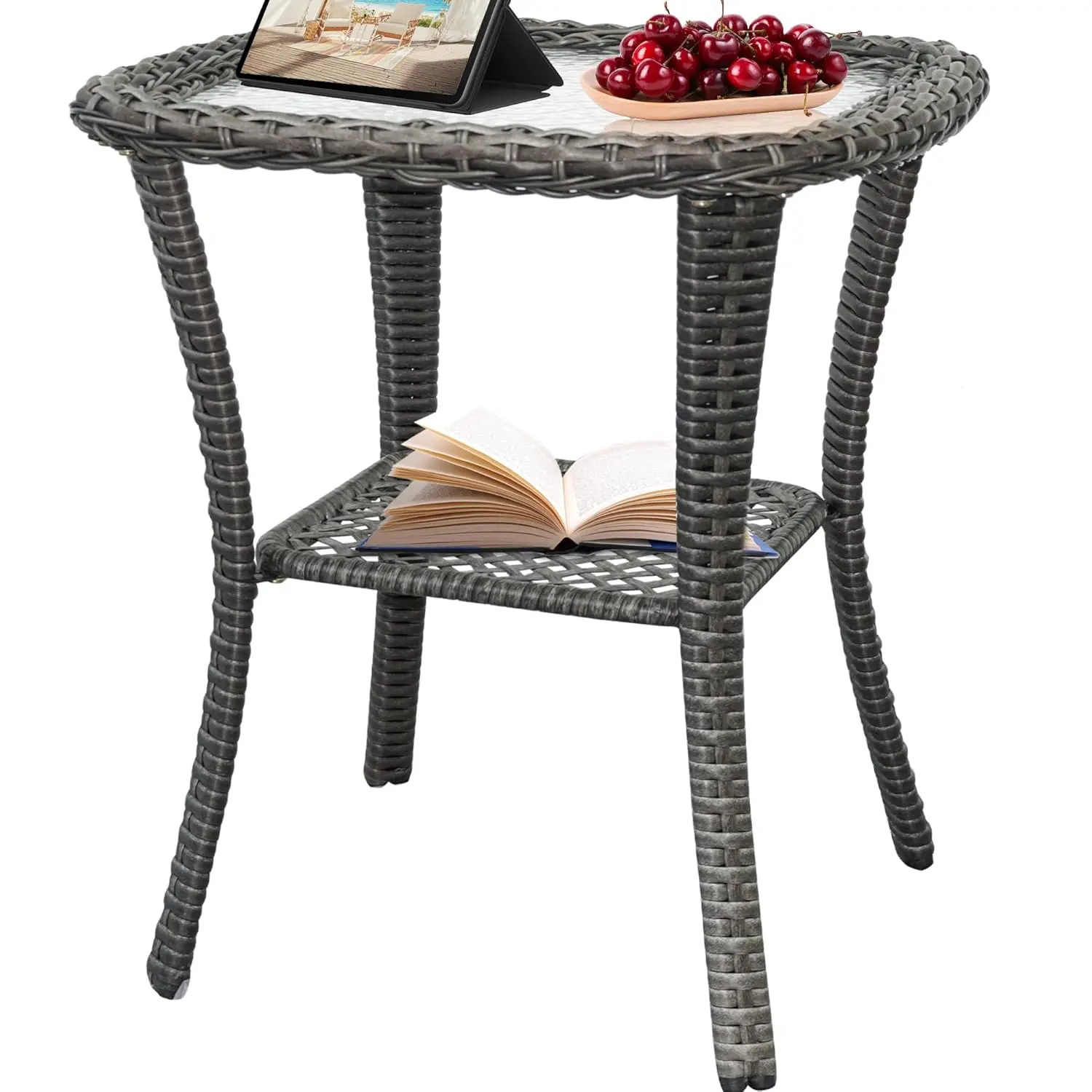 Outdoor Wicker Side Table,Double Rectangular Wicker Patio Table with Storage,All Weather Resin Rattan Patio Glass, Customized