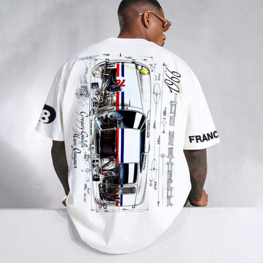 Oversized Men's Racing Print Short Sleeve T-Shirt