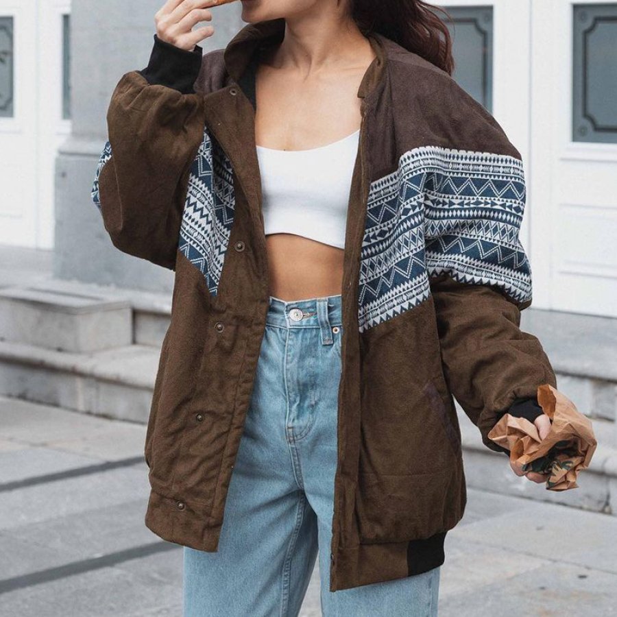 women tops,oversized unisex aztec jacket
