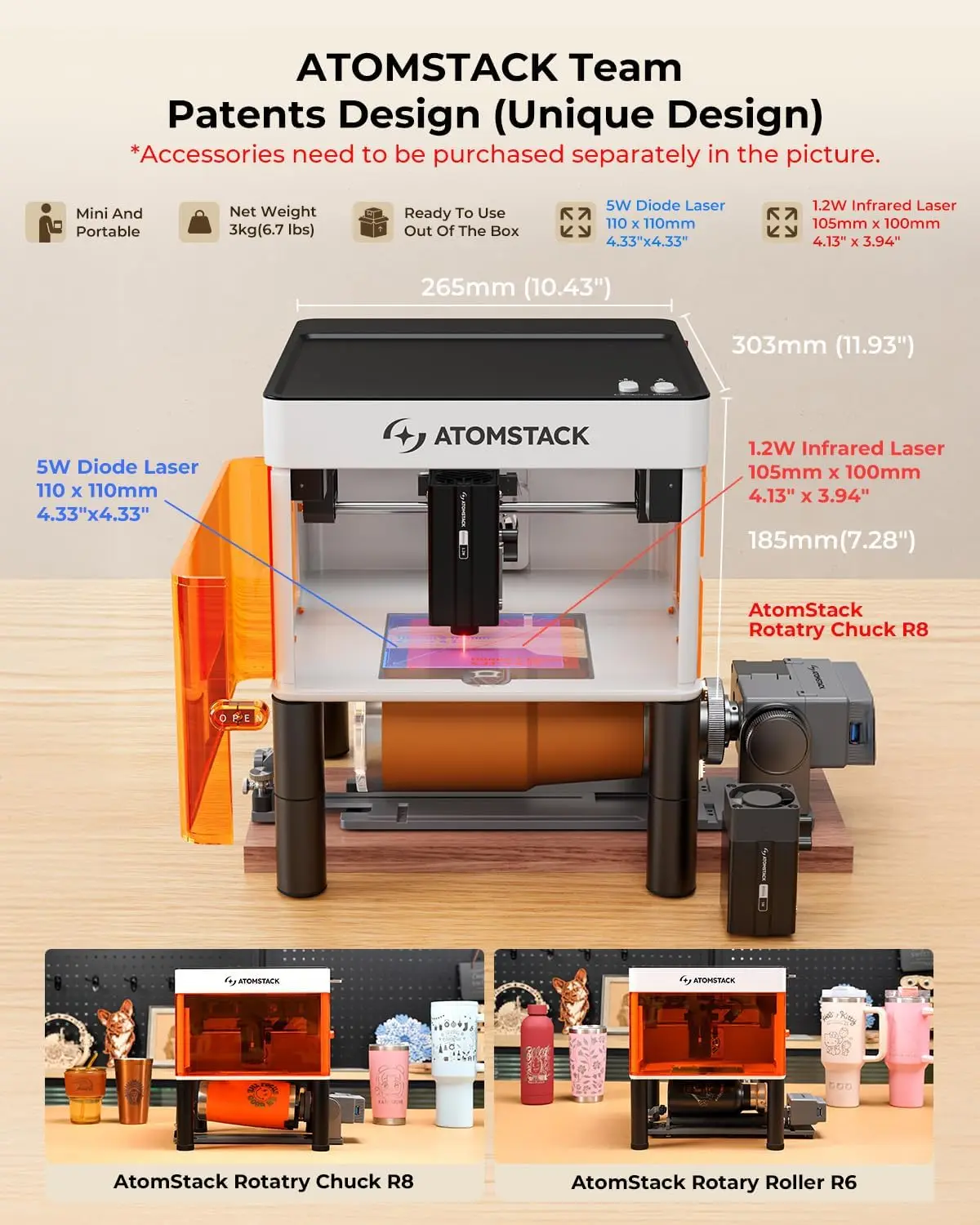 P1 5W Blue Light Red Light Dual Laser Engraver Portable 2-in-1 With Rotary Roller Set R8 Pro for All Metal ABS