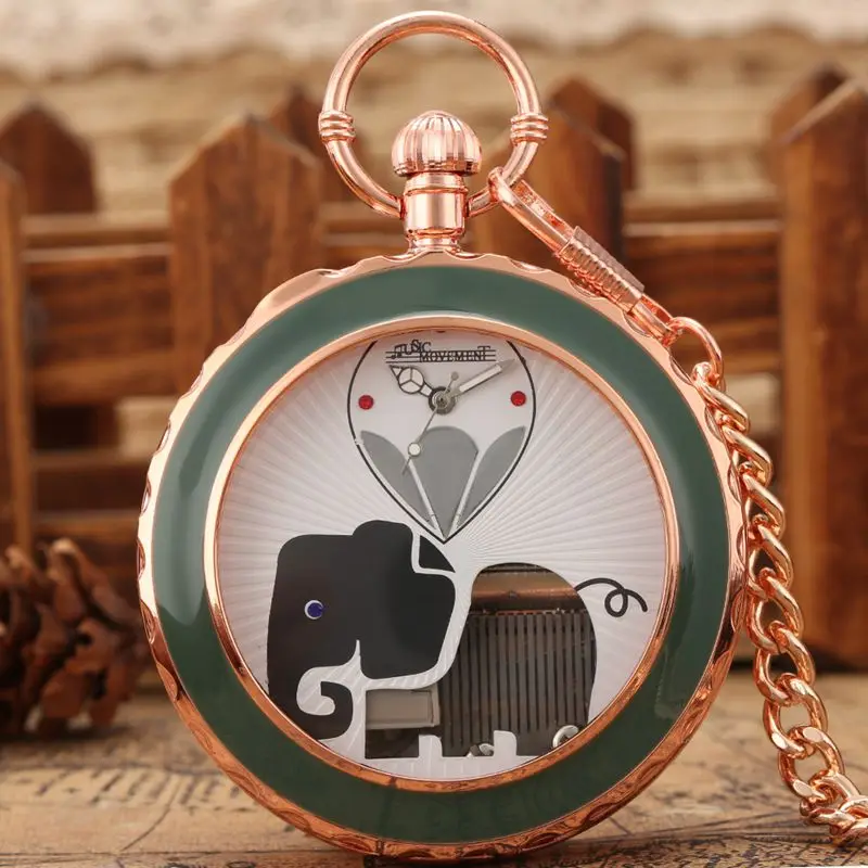 P4097C, нейтральный браслет из нержавеющей стали в стиле ретро, цвет розовое золото, зеленое кольцо, слон, белое лицо, лебедь, озеро
