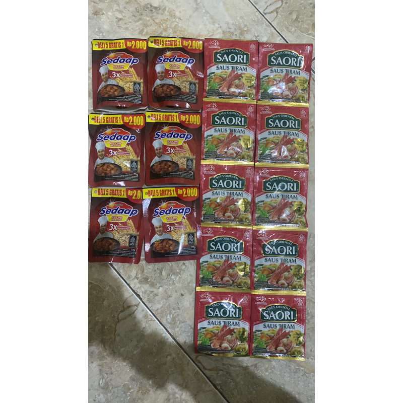 dapat kecap sedap kemasan 2000 6PCS dan saori saos tiram 1 renteng isi 10 sachet