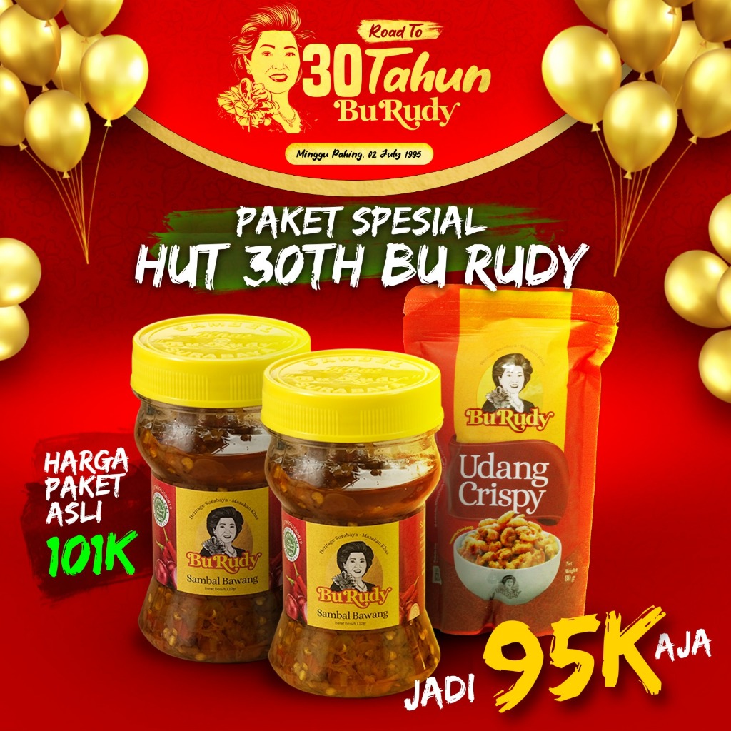 Dalam rangka memperingati 30 tahun perjalanan cita rasa legendaris Bu Rudy, kami menghadirkan Paket Spesial yang siap menggoyang lidah dan membawa nostalgia kelezatan khas Surabaya!