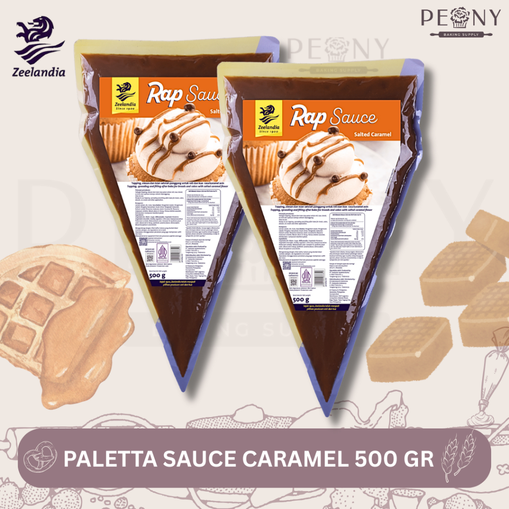 Saus karamel asin Rap Sauce 500gr dari Zeelandia adalah saus siap pakai yang bisa digunakan sebagai topping, olesan, atau isian untuk berbagai makanan dan minuman. Cocok untuk roti, kue, donat, es krim dan minuman dll.