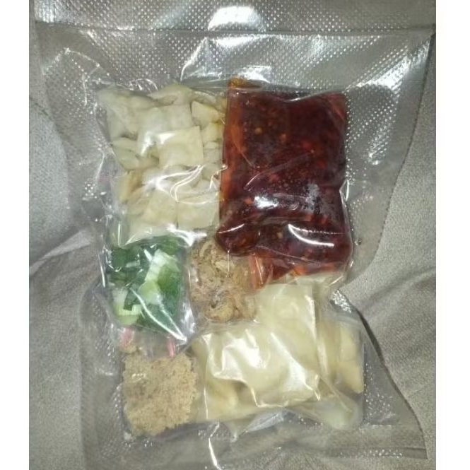 Pangsit dengan chili oil homemade plus bumbu & saus rahasia.