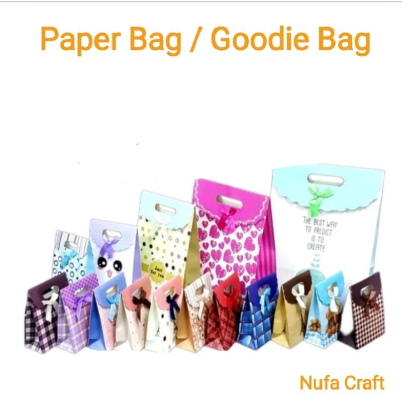 Paper bag / goodie bag untuk kado motif random dengan variasi ukuran: