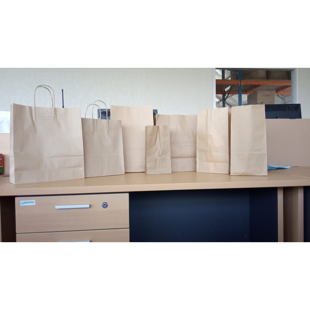 Paper Bag atau kantong kertas serba guna kami hadir untuk membantu membungkus makanan atau menjadi kantong belanja yang bergaya Amerika yang tentunya ramah lingkungan.