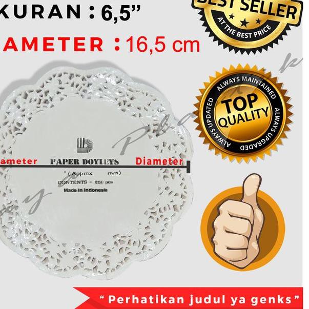 Ukuran Diameter 16.5 cm, ukuran ini pas sebagai tatakn pada dus ukuuran dus 12x 16 cmdan ukuran dus 15x15cm
