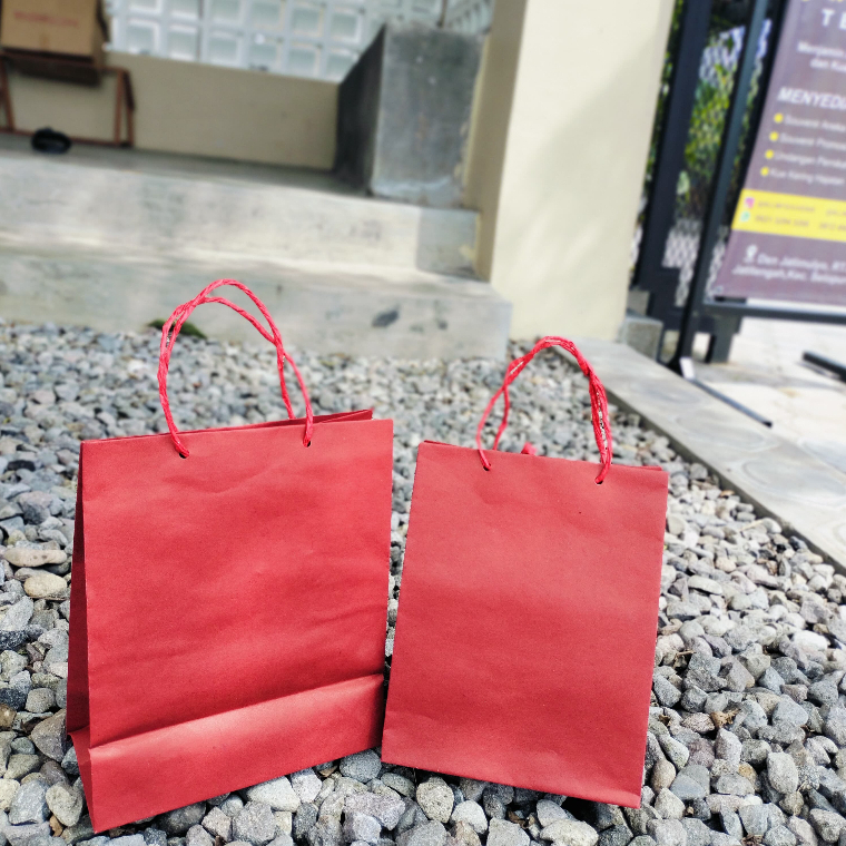 PAPERBAG POLOS MERAH UKURAN R7 DAN R5 LUSINAN