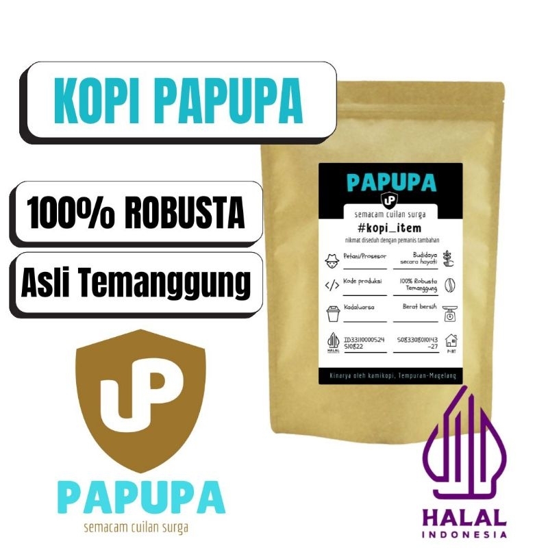 Kopi PAPUPA adalah minuman hasil seduhan biji kopi yang telah disangrai dan dihaluskan menjadi bubuk lembut.