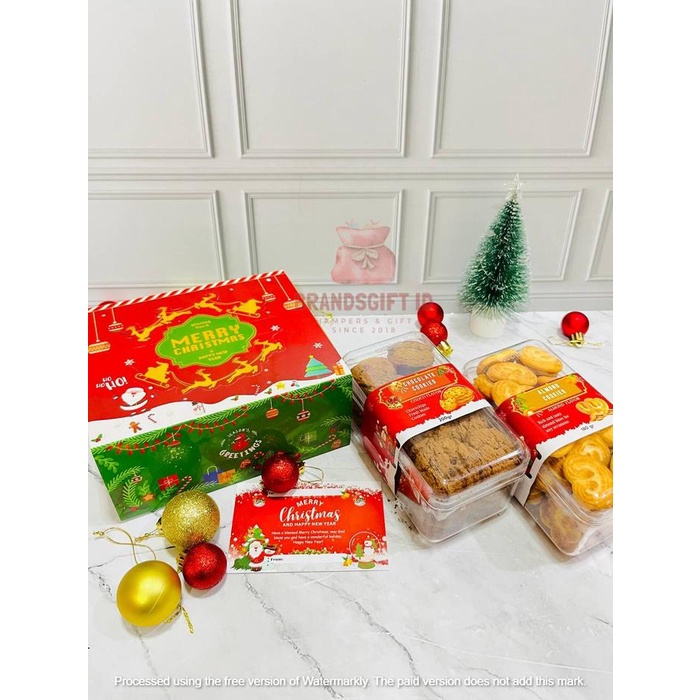 PARCEL HAMPERS NATAL PARCEL KADO NATAL ISI 2 COOKIES COKLAT & ALMOND COOKIES FREE PAPER BAG