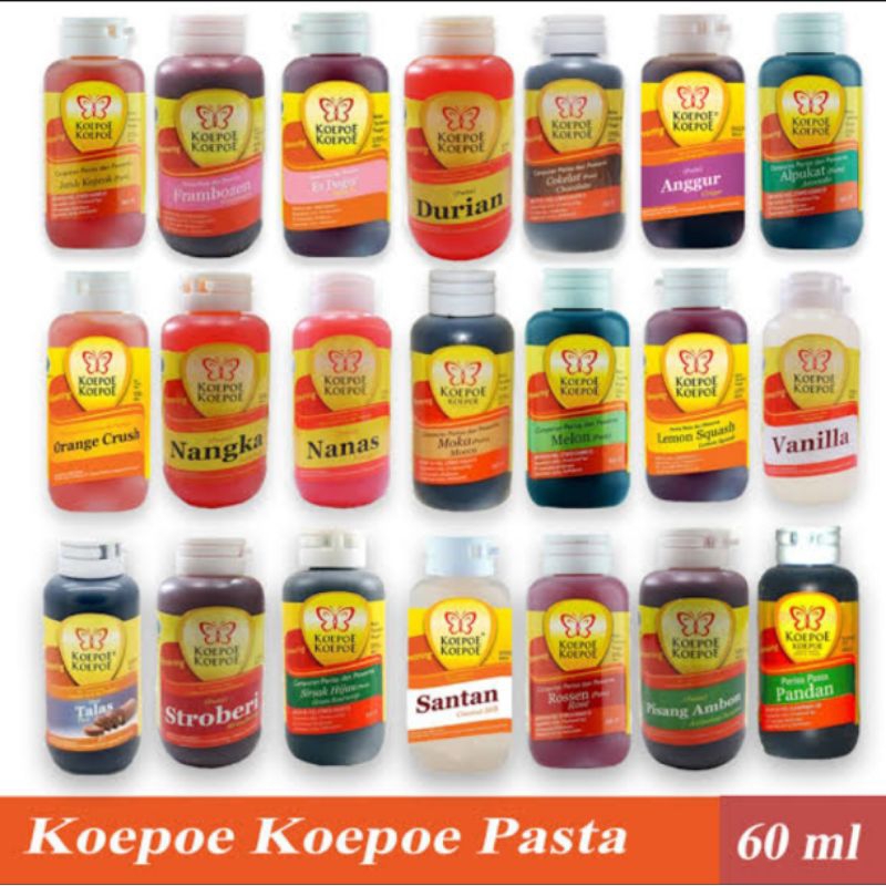 PASTA KUE KOEPOE KOEPOE 60ML TERSEDIA RASA : - ALPUKAT - PANDAN - LEMON SQUASH - NANAS - COKLAT - COCOPANDAN - LEMON - JERUK KEPROK - PISANG AMBON - VANILA - STRAWBERRY - KOPI MOKA - DURIAN - FRAMBOZEN - LECI - MOKA - ES DOGER - ROSEN - ANGGUR - NANGKA PRODUK READY SESUAI STOCK DISARANKAN PENGIRIMAN MENGGUNAKAN KURIR INSTANT ATAU SAMEDAY UNTUK WILAYAH YANG TERJANGKAU, DEMI MENJAGA KUALITAS BARANG PENGIRIMAN INSTANT SAMPAI JAM 16:00, SAMEDAY 14:00 SETIAP PENGIRIMAN DIBUNGKUS AMAN DENGAN MENGGUNAKAN DUS, APABILA ADA KERUSAKAN BUKAN LAGI TANGGUNG JAWAB KAMI. SILAHKAN ORDER BUBBLE WRAP DI ETALASE TOKO.