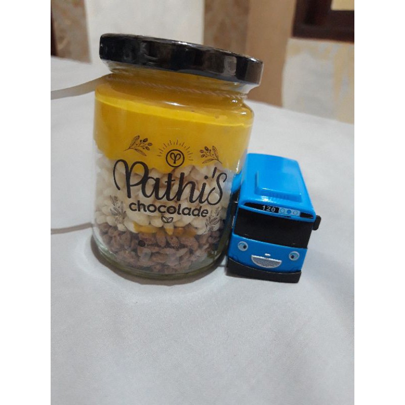 Pathis Chocolade adalah coklat lezat yang dipadu dengan renyahnya rice crispy dan disajikan secara unik dalam wadah jar