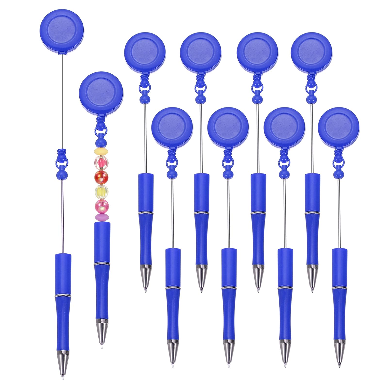 PATIKIL 10 шт. Ручки с бусинами Выдвижной бейдж-ролик Ручки с бусинами Оптом Бусины Шариковые ручки Черные чернила Сделай сам для изготовления Работник Официантка Пишущий инструмент Синий синий