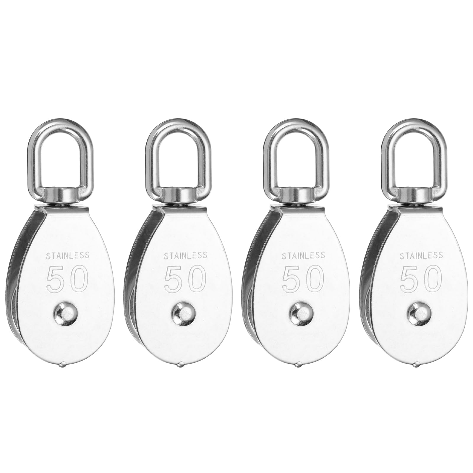 PATIKIL 4 шт. Одинарный блок M50 304 Нержавеющая сталь Канатный крановый блок Вращающийся крюк Подвесное шкивное колесо для строительства Склад Морской