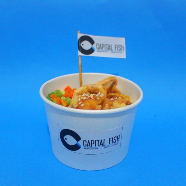 Rice bowl dengan potongan ikan patin sert#a onion ring, dengan tambahan sayur wortel buncis dan selada. Dijamin mantab dan nikmat