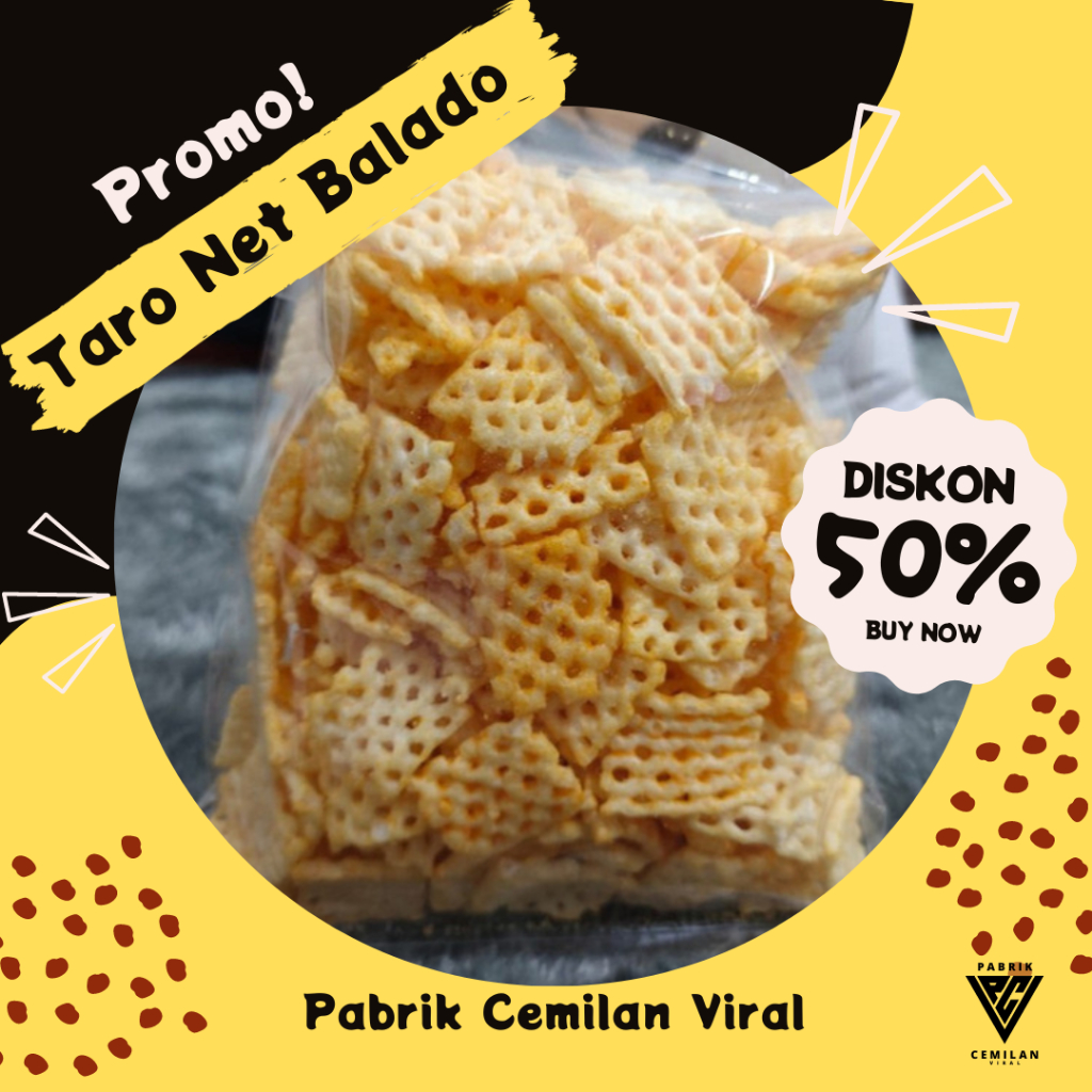 Nikmati kelezatan TARO NET, camilan yang menggoda dengan cita rasa yang khas dan tekstur yang renyah. Taro net adalah camilan yang terbuat dari singkong, diolah dengan cara yang khas sehingga menghasilkan tekstur yang renyah dan gurih. Setiap gigitan TARO NET membawa Anda pada pengalaman rasa yang memikat dan membuat Anda ketagihan. Cocok dinikmati sebagai camilan di waktu santai bersama keluarga atau teman-teman, TARO NET akan menambah keceriaan dalam momen Anda.