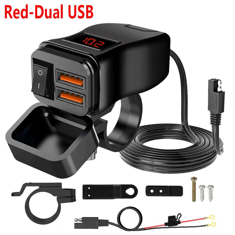 PD+QC3.0 USB-зарядное устройство для мотоцикла, быстрое зарядное устройство, 60 Вт, руль, два разъема USB с переключателем, вольтметром, водонепроницаемый адаптер питания 12 В