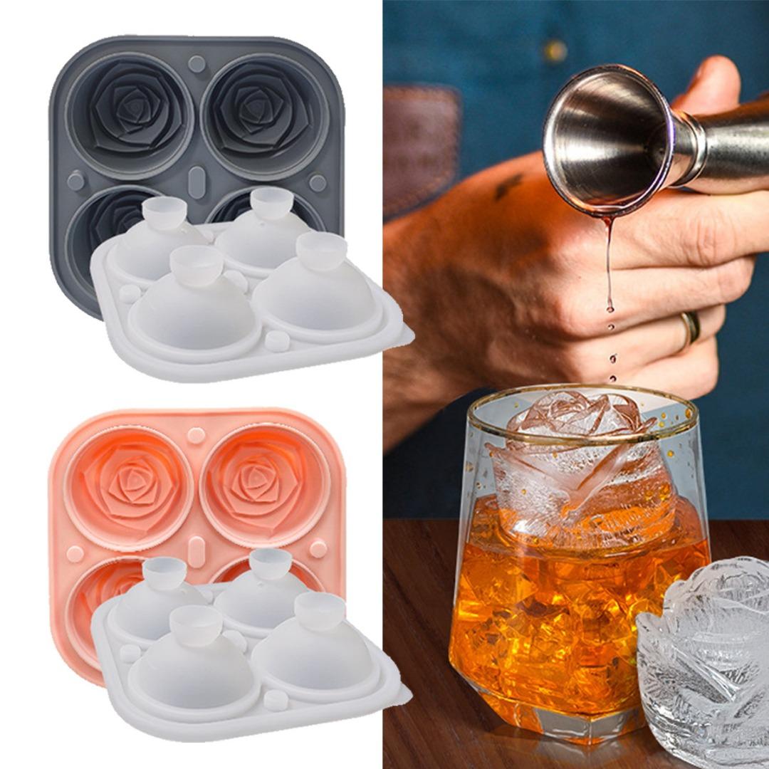 PDTO Подносы для льда в форме розы Форма для кубиков льда Силиконовый поднос со встроенной крышкой воронки