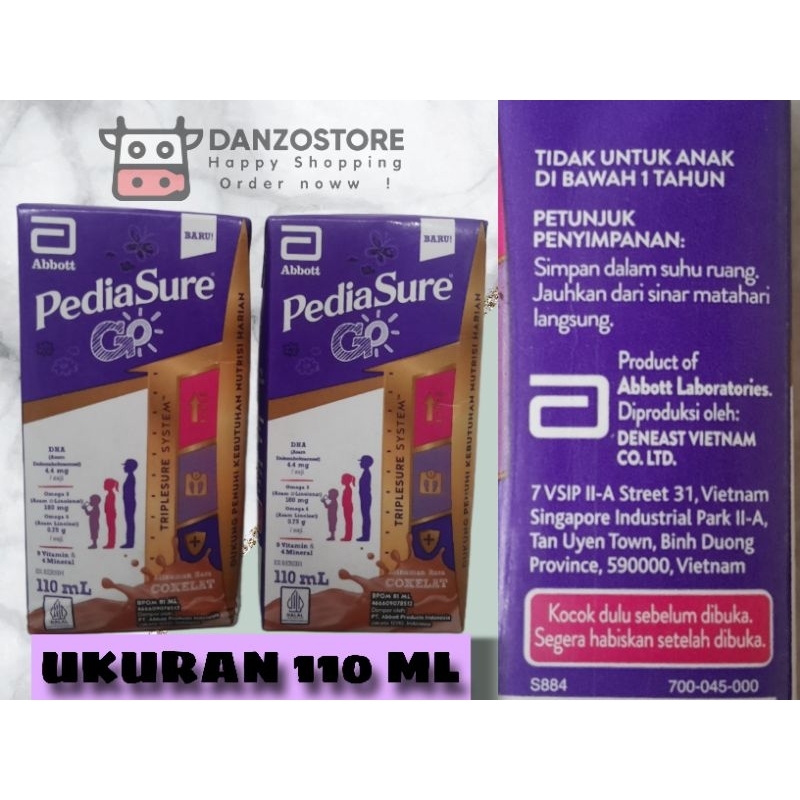 PediaSure Go! adalah susu cair siap minum yang dirancang khusus untuk membantu memenuhi kebutuhan nutrisi anak yang aktif dalam masa pertumbuhan. Produk ini mengandung kombinasi vitamin, mineral, dan nutrisi penting, termasuk protein, kalsium, serta berbagai vitamin (seperti A, C, dan D) yang mendukung perkembangan tulang, daya tahan tubuh, dan energi. PediaSure Go! sering digunakan sebagai pendamping makanan utama, khususnya bagi anak yang memiliki kesulitan makan atau membutuhkan tambahan asupan nutrisi untuk mendukung aktivitas harian mereka. Susu ini tersedia dalam berbagai rasa yang disukai anak, seperti cokelat dan vanila, sehingga lebih mudah diterima oleh mereka.