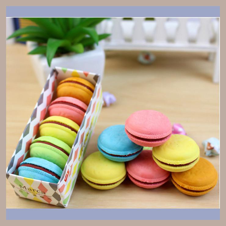 Penghapus berbentuk macaron ini terbuat dari bahan karet. Dapat menghapus dengan bersih tanpa merusak kertas. Mirip banget sama macaron asli :)
