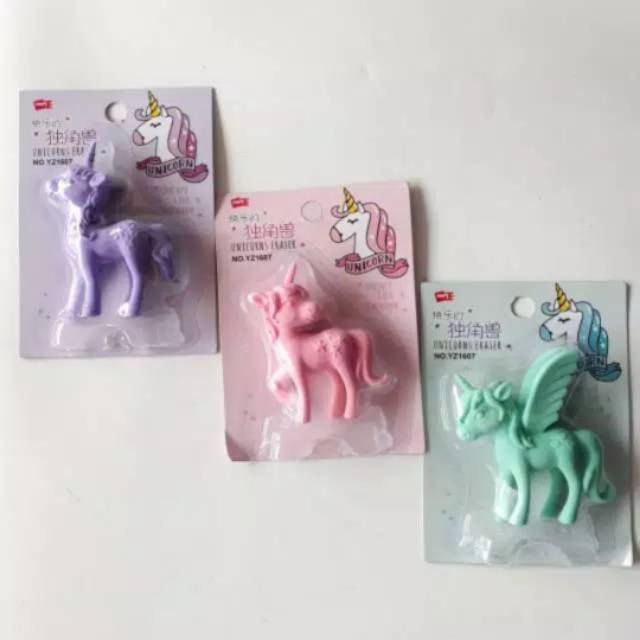 Penghapus Unicorn 3D yg keren banget tersedia dalam 3 macam warna. Penghapus bahan tebal dan kokoh bisa diberdirikan