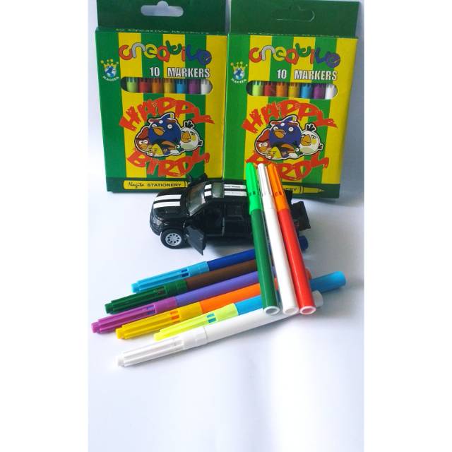 *ada 2 spidol putih di setiap setnya,(beberapa merk lain hny 1/set) yg memungkinkan putra putri anda membuat lebih banyak variasi warna