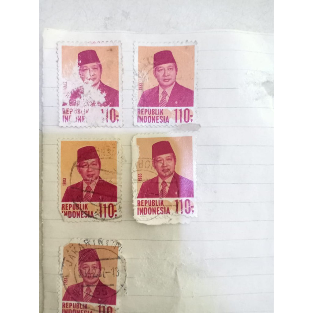 perangko edisi presiden RI ke 2, pak Suharto.nominal 110rupiah, keluaran tahun 1983.kondisi apa adanya.ada cuil dikit.
